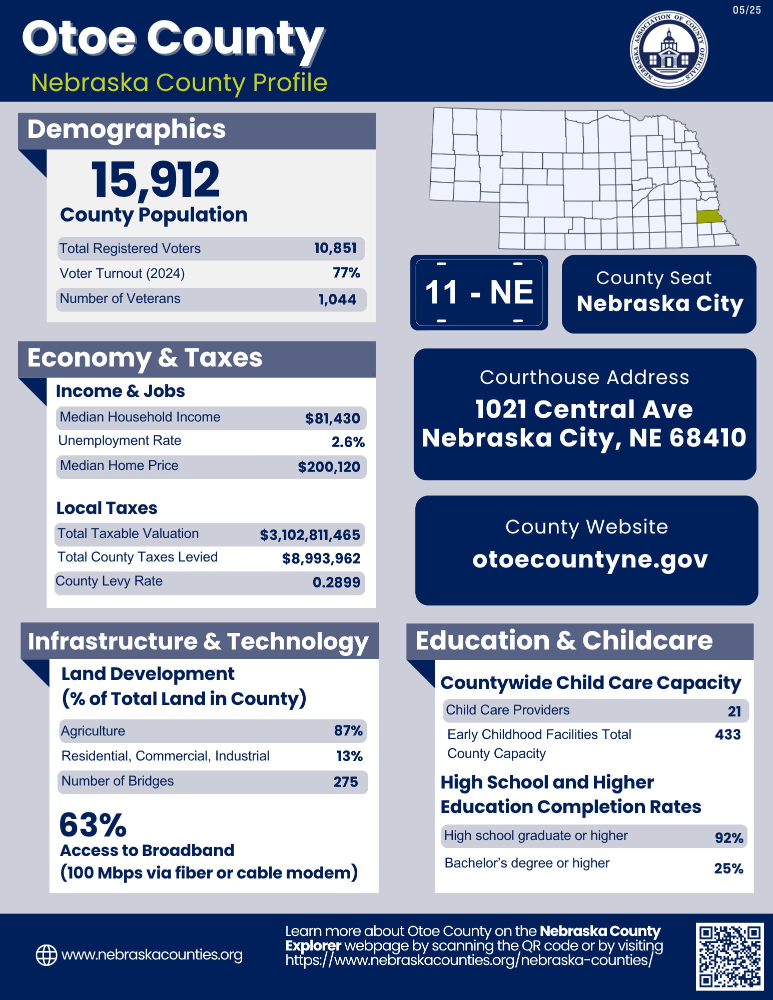 - Cities (pop. & class): Nebraska City (7,222 • 1st Class), Syracuse (1,941 • 2nd Class)